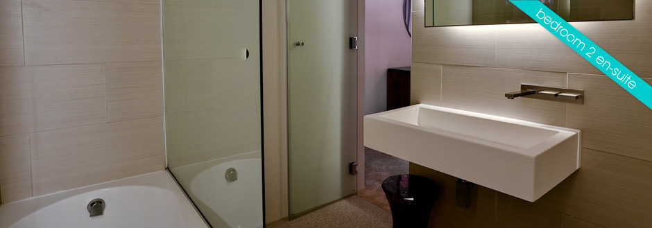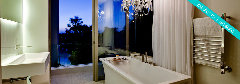 Bedroom 2 offers a private south facing terrace with a wonderful view of the world famous Twelve Apostles mountain range. This bedroom benefits from an Italian imported glass wardrobe system, bespoke cabinetry, double sized bed and plush carpeting. The en-suite to this bedroom is compact but nevertheless still offers a built in bath with over head ceiling level shower system – Bath cladded in Italian marble – a large contemporary cantilever basin and WC. Two back light mirrors, one full length, delicately illuminate this space.